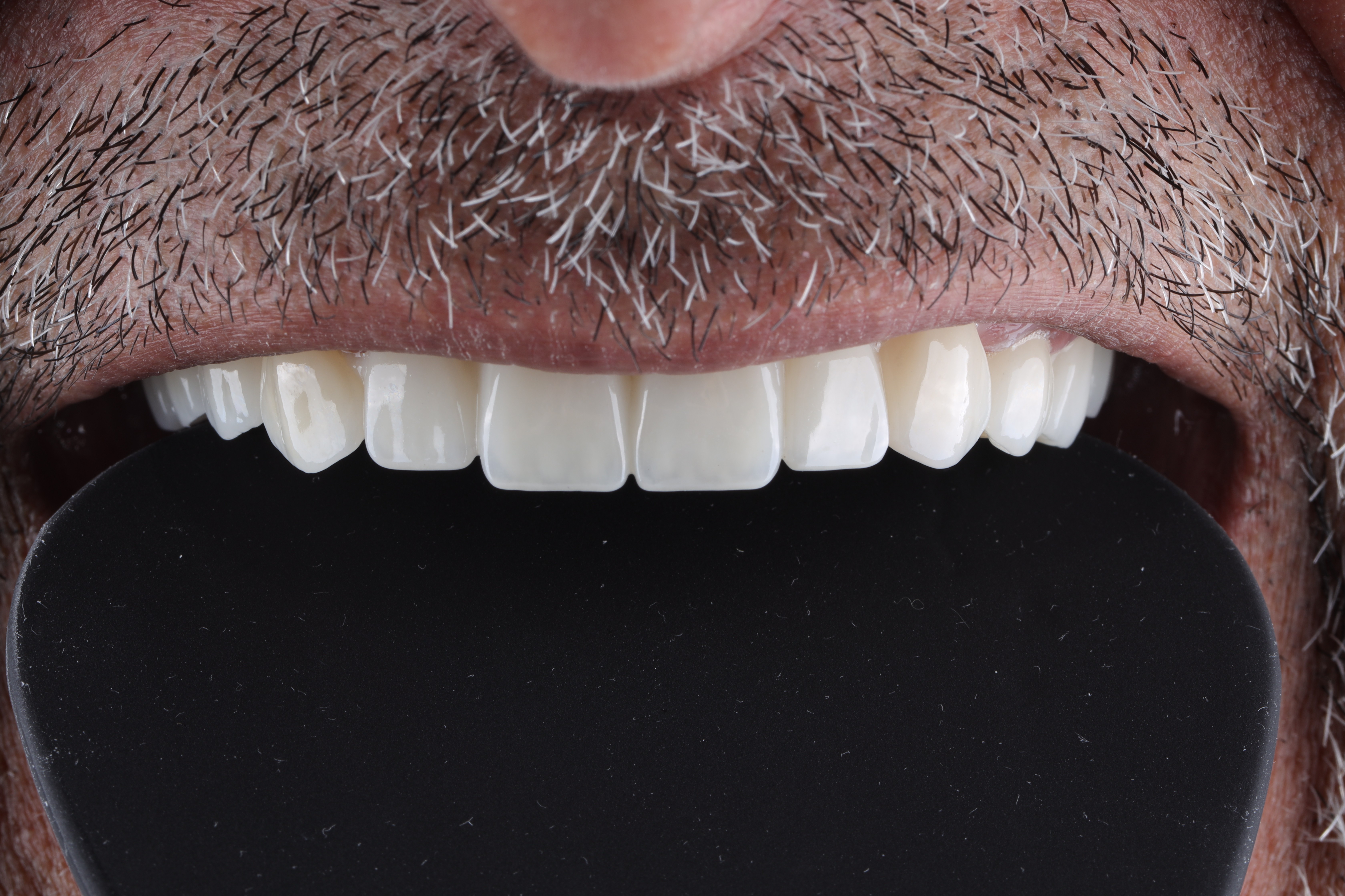 6 قشور ايماكس مع تركيبات الزركونيا (Layered) كانت كفيلة بأن تحدث هذا التحوّل في ابتسامة المراجع، من مراجع حاد المزاج، عصبي، عجول ومتشكك الى مراجع منبهر .. ثقته تضاعفت بطبيبته، هذا هو التحوّل الذي ننشده، تحوّل يتجاوز حدود الابتسامة الجميلة.